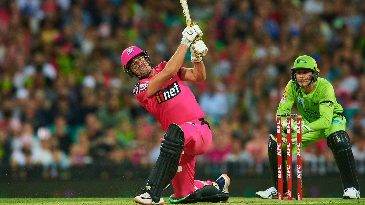 Thunder pair Usman Khawaja and Alex Hales looked to have fallen well short before Hales launched a six from the fifth ball, leaving him six to win off the final delivery.