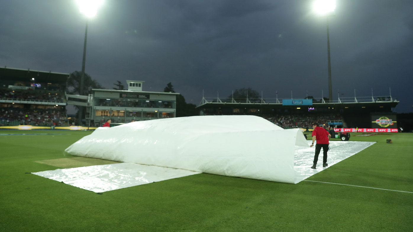 Earlier, play was halted twice in the Hobart innings as they reached 5-69 from 11 overs after being sent in.