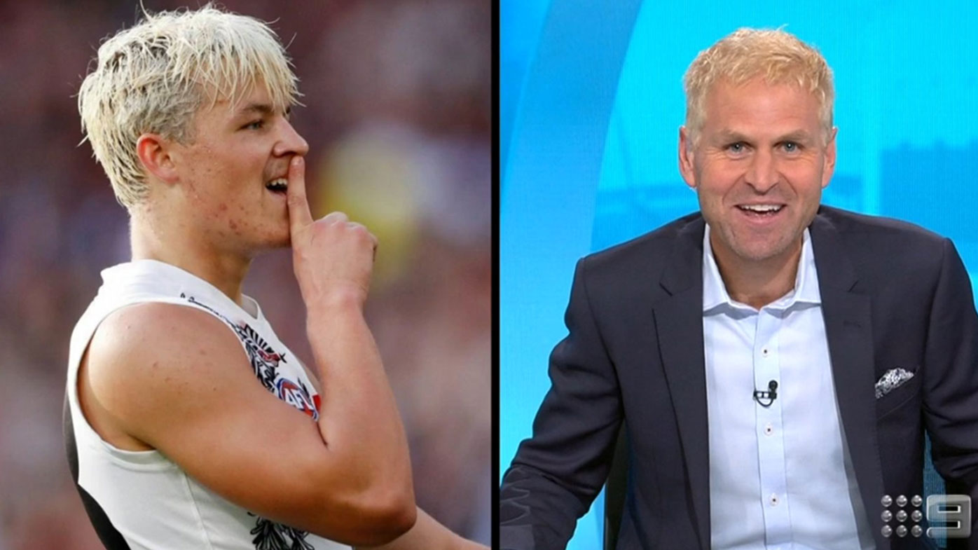 But in the aftermath of the 19-year-old's five-goal performance against Essendon, in which he claimed the Anzac Day medal for best on ground, Cornes surprised his fellow panellists with a Ginnivan-inspired hairdo on Nine's AFL Sunday Footy Show.