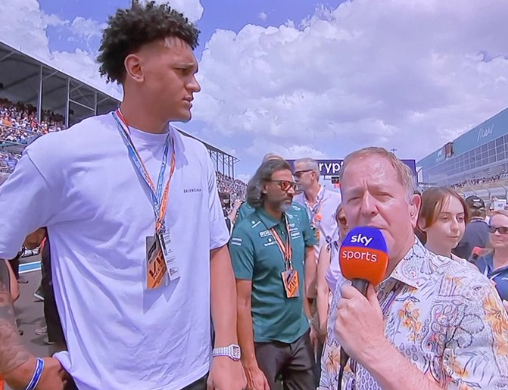 Following his memorable interview with rapper Megan Thee Stallion at the US Grand Prix last October, the Sky Sports pundit didn't let fans down at the Miami Grand Prix this morning (AEST).