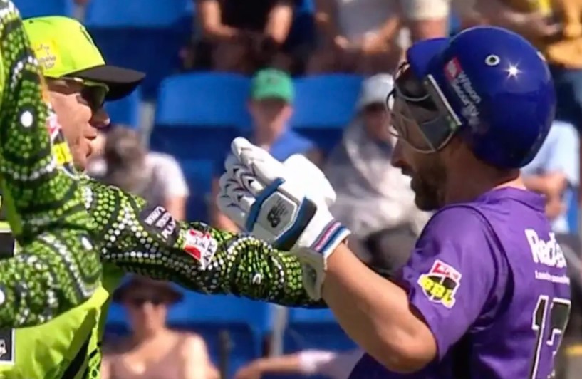 After Warner was castled for a duck by a delivery dubbed "jaffa of the season" at Bellerive Oval, tensions escalated when Wade was at the crease during Hobart's innings.