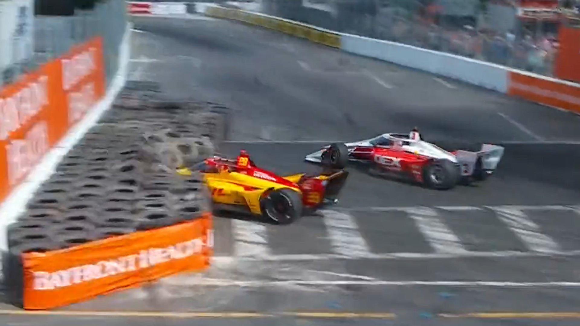 The first of those saw Devlin DeFrancesco get airborne after Benjamin Pedersen piled into the side of his car.
