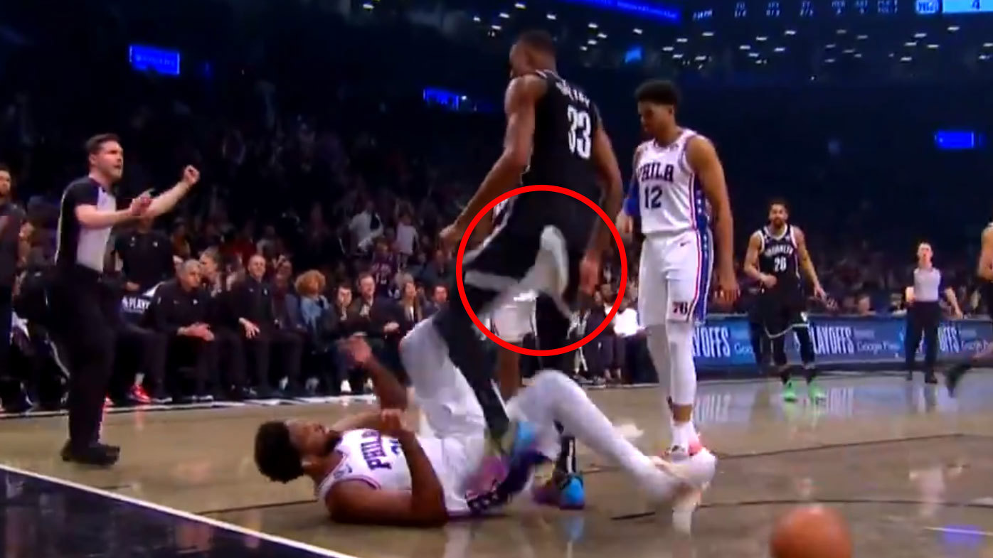 The referees assessed the play but allowed Embiid to stay in the game, with the MVP favourite's kick assessed as a flagrant foul penalty one instead of a flagrant two which would've seen him ejected. Claxton was given a technical foul for stepping over Embiid.