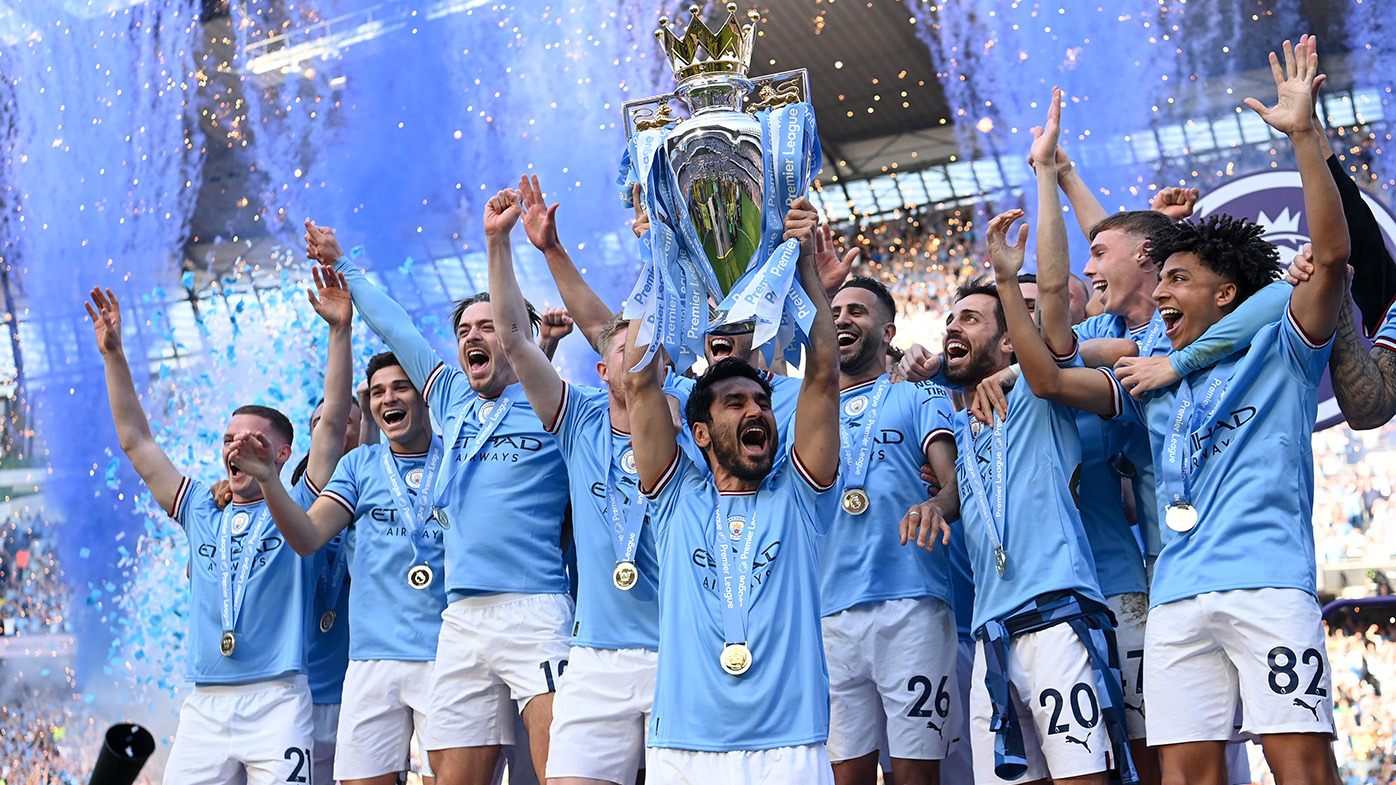 With an explosion of blue-and-white ticker tape, Manchester City's Premier League title celebrations erupted.