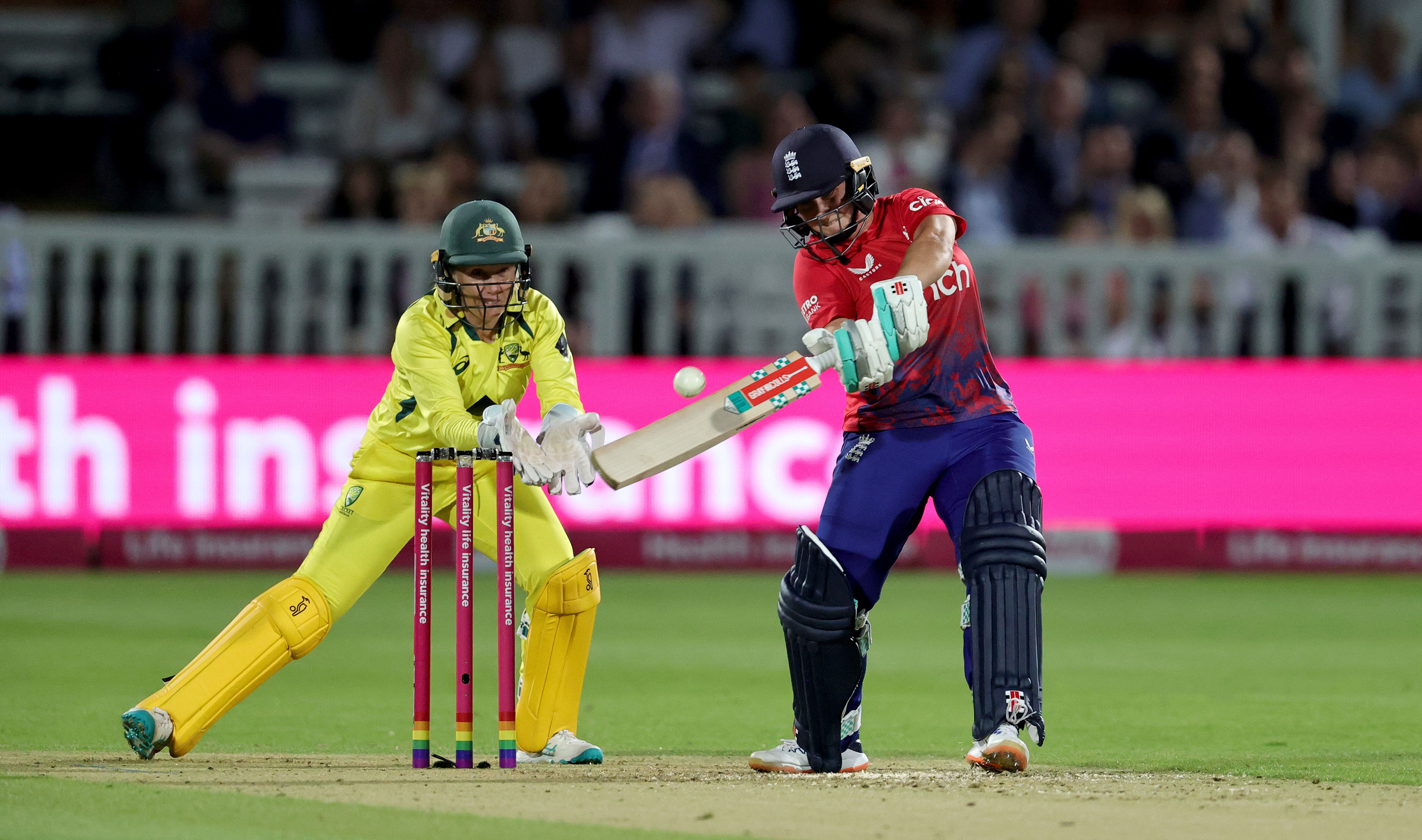 // England has once again rallied to keep their hopes of winning the Women's Ashes alive after gun teen Alice Capsey led her team to their second-successive T20 victory over Australia. The 18-year-old Capsey belted 46 off just 24 balls in combination with vice-captain Natalie Sciver-Brunt to help England chase down the revised target of 119 with four balls to spare of their 14 allowed overs. England burst out of the gate and raced to 39 in the fourth over thanks to some big hitting from Danni Wyatt before Megan Schutt had her caught behind with the last ball of the fourth over. READ MORE: Head smashes back-to-back sixes to give Aussies hope READ MORE: Broad's dad condemned for inflammatory Warner jab READ MORE: Cricket Australia slams bizarre barber shop rumour Australia had two in two balls when Darcie Brown had Sophia Dunkley caught, which brought Capsey to the crease. She and Sciver-Brunt then combined for a 68-run partnership that lasted barely seven overs, and all but ended Australia's hopes of clinching the Ashes in this match. When Capsey eventually holed out to Ash Gardner off the bowling of Meg Schutt, England needed just 12 runs from the final 15 balls. But it wasn't completely straight forward. Georgia Wareham bowled Sciver-Brunt in the next over, but England by then only required two from the final over. Jess Jonassen gave the Aussies a sniff when she had Heather Knight trapped in front with the first ball of the over – although the England skipper reviewed it and showed the call was marginal, but correct. But Danielle Gibson with her first ball played a sensational reverse sweep that beat the fielder at third man and ran away for four. Capsey was awarded player of the match for her innings. "It has been unbelievable. The series is still alive, which is amazing. It was a great performance," she said after the match. "T20 cricket, especially the way I play, sometimes I'm going to come off and sometimes I won't. "It's just about getting better and trying to become more consistent at it. I've been working hard in the nets and been given a lot of backing by the coaching staff." Earlier, an all-round team effort from Australia saw them post 7-155 from their 20 overs. The batters all shared the load, with Beth Mooney, Ash Gardner and Ellyse Perry all making scores in the 30s at better than a run a ball, and Grace Harris a quickfire 25 off just 15 balls. Heavy rain during the innings break delayed the start of England's chase and brought about the revised target. Aussie skipper Alyssa Healy said the England batters "out-braved" her squad. "England out-braved us and batted really well. They played some fearless cricket and got themselves over the line," she said. "That's the beauty of the T20 format. When you're not quite on, you can get pounced upon by teams. "England have played a really great style of cricket throughout the series and we didn't quite match that. "Fortunately, we've still got three games of this Ashes series to pick ourselves up. We go into the one-day format, which we absolutely love." After the three T20s, the multi-format series moves into ODI mode, where the Aussies are in the midst of a 15-match winning streak. For a daily dose of the best of the breaking news and exclusive content from Wide World of Sports, subscribe to our newsletter by clicking here! England has once again rallied to keep their hopes of winning the Women's Ashes alive after gun teen Alice Capsey led her team to their second-successive T20 victory over Australia. The 18-year-old Capsey belted 46 off just 24 balls in combination with vice-captain Natalie Sciver-Brunt to help England chase down the revised target of 119 with four balls to spare of their 14 allowed overs. England burst out of the gate and raced to 39 in the fourth over thanks to some big hitting from Danni Wyatt before Megan Schutt had her caught behind with the last ball of the fourth over. READ MORE: Head smashes back-to-back sixes to give Aussies hope READ MORE: Broad's dad condemned for inflammatory Warner jab READ MORE: Cricket Australia slams bizarre barber shop rumour Australia had two in two balls when Darcie Brown had Sophia Dunkley caught, which brought Capsey to the crease. She and Sciver-Brunt then combined for a 68-run partnership that lasted barely seven overs, and all but ended Australia's hopes of clinching the Ashes in this match. When Capsey eventually holed out to Ash Gardner off the bowling of Meg Schutt, England needed just 12 runs from the final 15 balls. But it wasn't completely straight forward. Georgia Wareham bowled Sciver-Brunt in the next over, but England by then only required two from the final over. Jess Jonassen gave the Aussies a sniff when she had Heather Knight trapped in front with the first ball of the over – although the England skipper reviewed it and showed the call was marginal, but correct. But Danielle Gibson with her first ball played a sensational reverse sweep that beat the fielder at third man and ran away for four. Capsey was awarded player of the match for her innings. "It has been unbelievable. The series is still alive, which is amazing. It was a great performance," she said after the match. "T20 cricket, especially the way I play, sometimes I'm going to come off and sometimes I won't. "It's just about getting better and trying to become more consistent at it. I've been working hard in the nets and been given a lot of backing by the coaching staff." Earlier, an all-round team effort from Australia saw them post 7-155 from their 20 overs. The batters all shared the load, with Beth Mooney, Ash Gardner and Ellyse Perry all making scores in the 30s at better than a run a ball, and Grace Harris a quickfire 25 off just 15 balls. Heavy rain during the innings break delayed the start of England's chase and brought about the revised target. Aussie skipper Alyssa Healy said the England batters "out-braved" her squad. "England out-braved us and batted really well. They played some fea