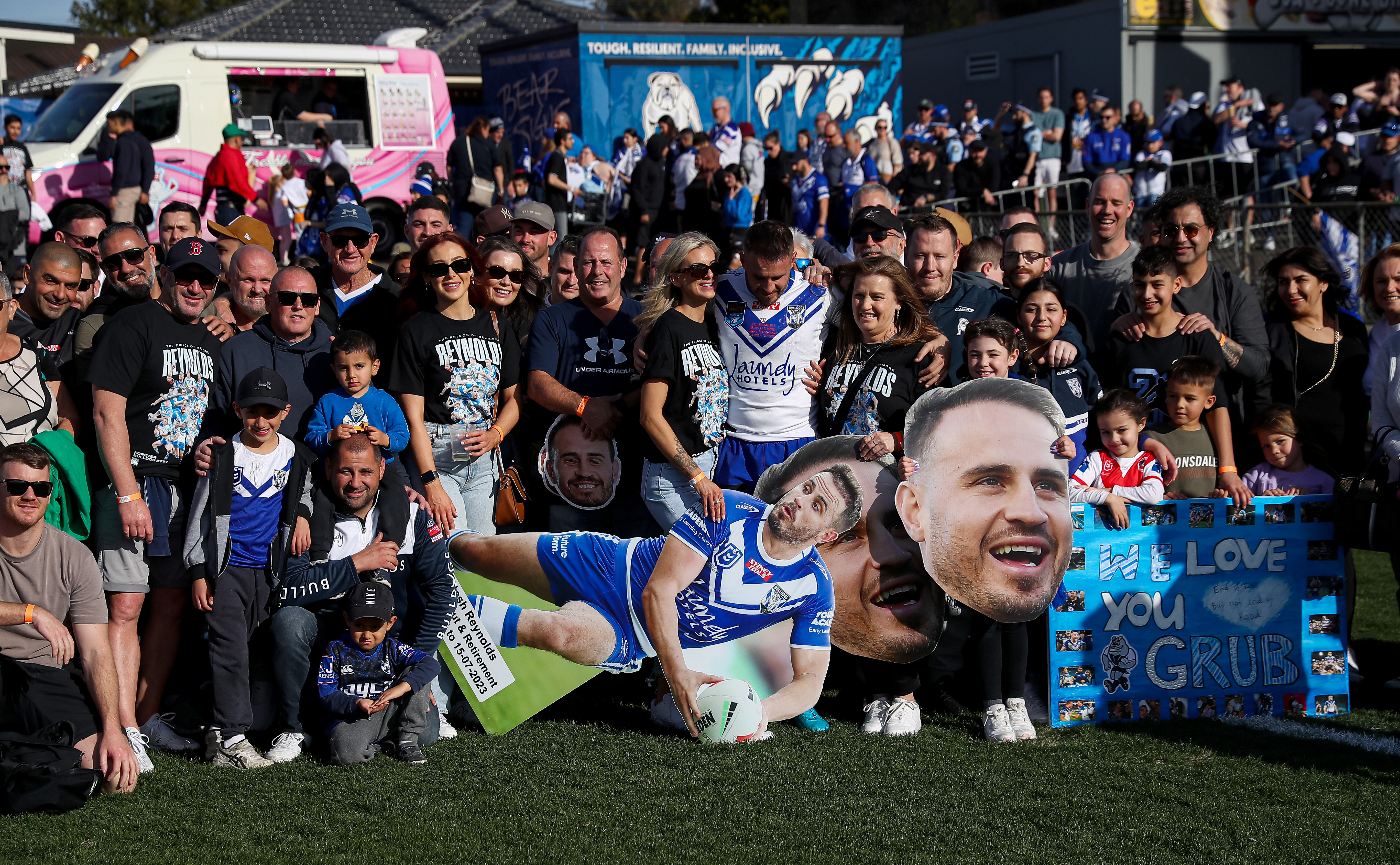 Bulldogs fans continued to celebrate Reynolds' career after Canterbury's clash with Brisbane, with Bulldogs and Broncos players also joining in.