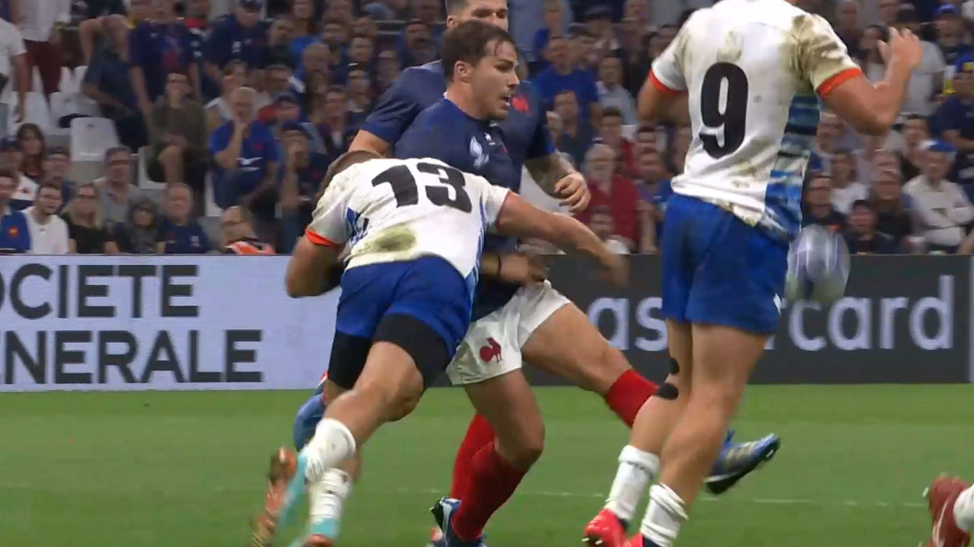 France captain Antoine Dupont may have been forced off the field with a facial injury, but he managed to have one of the try assists of the tournament beforehand.